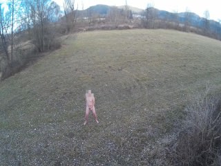 Big Tit BBW masturbates in garden