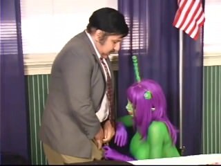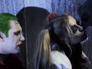 Hot costume threesome with a busty..