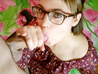 Shy Asian teen chick sucking on his..